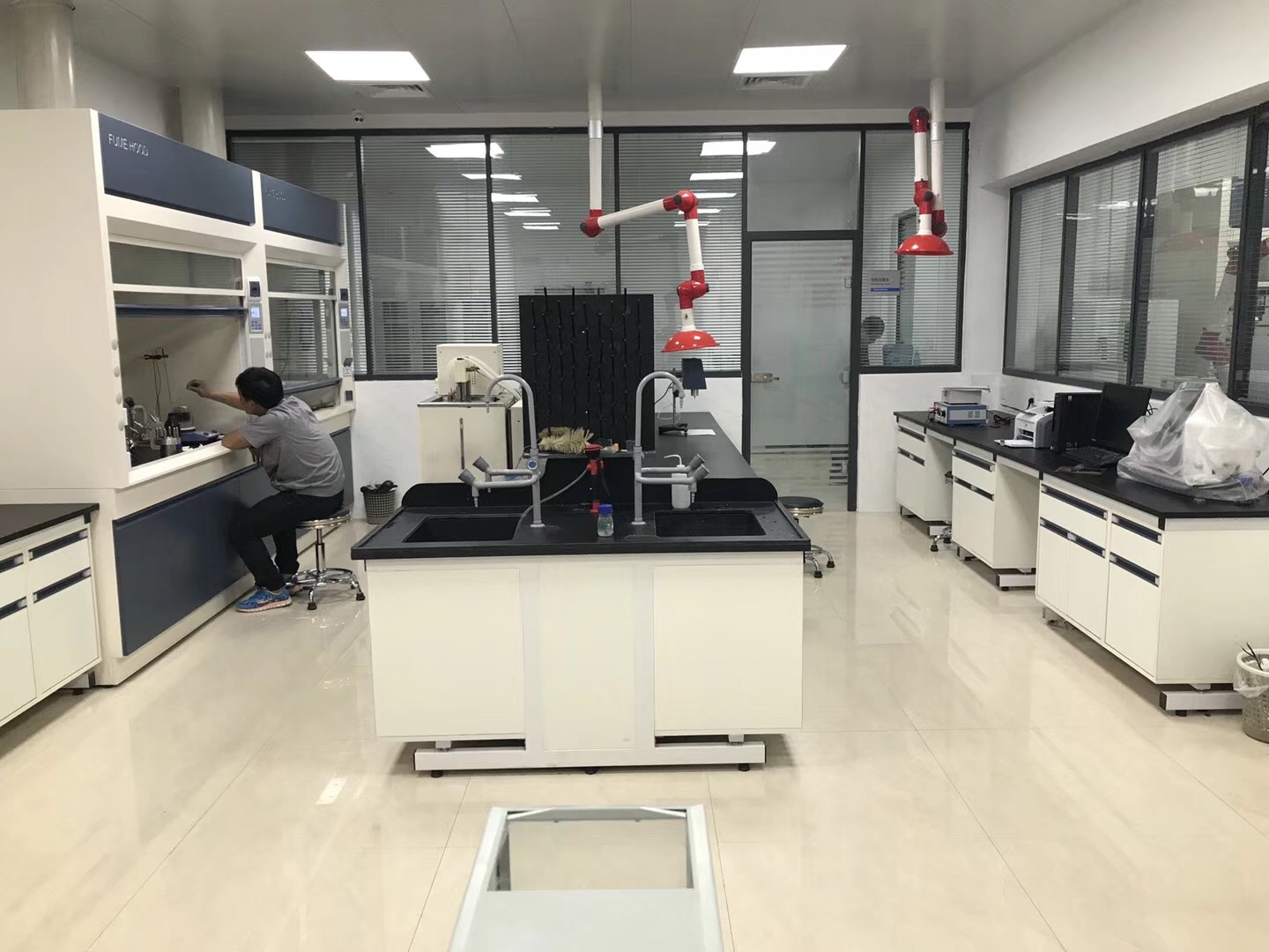 实验台柜体设计,建议用户让实验台留出坐人的空位或电脑键盘架位,就算目前用不上以后有可能会用上。这样不但设计更人性化,还有利于多采用标准柜体,可以把多余的尺寸留到空档内,同时可节省材料。