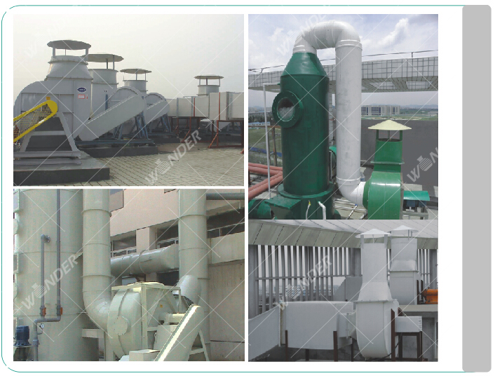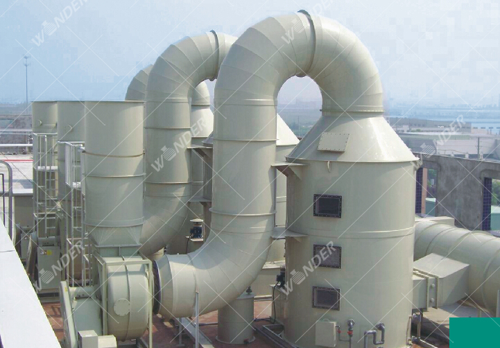 废气净化系统采用水喷淋、活性炭吸附、新型吸附剂吸附等多种处理方式,主要应用于硝酸、硫酸、盐酸、氢氟酸、磷酸、硼酸、高氯酸气体及其它有机气体的达标排放。其吸收率高,不受使用环境的限制,没有二次污染,广泛应用于化工、电子、冶金、机械等行业的废气处理